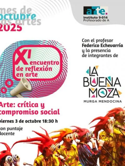 El Profesorado de Arte 9-014 de San Rafael organiza el 11° encuentro de Reflexión en Arte denominado "Arte: Crítica y compromiso social" que se desarrollará el viernes 3 desde las 18:30 en sus instalaciones de avenida Mitre 851.