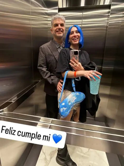 "Feliz cumple, mi corazón", escribió en una de sus historias, acompañando el mensaje con una selfie tomada en el ascensor. En la imagen, ambos aparecen abrazados y sonrientes: ella con su inconfundible pelo azul, su look extravagante y una cartera celeste que parece salida de una performance pop; él, de traje gris y una sonrisa que confirma lo que el texto insinúa. En otra secuencia publicada en su feed, Cintia recopiló distintos momentos de su vida en pareja: una cena íntima, un paseo, un gato que los acompaña en el sillón y una foto que muestra a Ale tocando la guitarra frente a una vista panorámica de la ciudad. Sin palabras, pero con gestos, los dos sellaron públicamente su reconciliación.