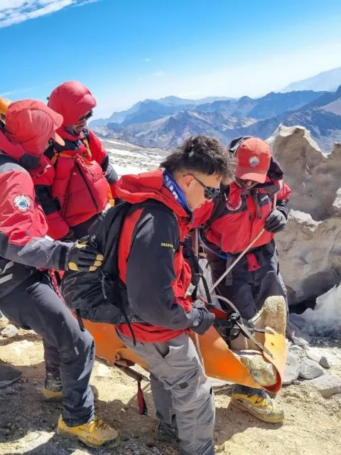 Un andinista estadounidense fue rescatado en alta montaña a unos 6000 metros de altura por personal de la Patrulla de Rescate.