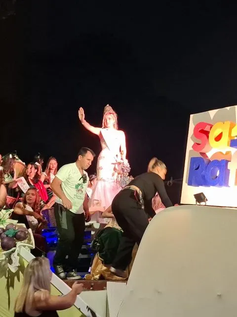 Desfiló en el imponente carro que presentó el departamento. La Fiesta central se realizará el domingo