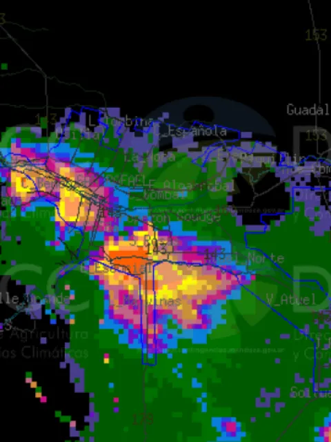 Dos celdas importantes se encuentran al suroeste de la ciudad. Ya precipitó granizo en la Villa 25 de Mayo, Rama Caída y Cuadro Benegas
