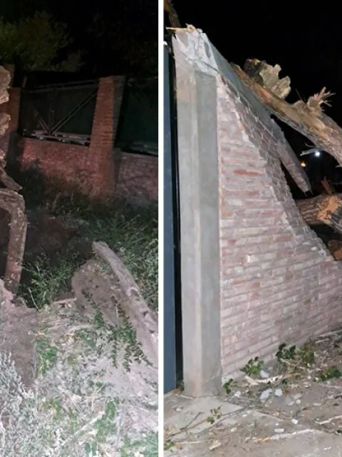 Un árbol de gran porte cayó este martes a las 20 y destruyó una pared del cierre perimetral de una vivienda ubicada en San Martín y Maipú de la Villa 25 de Mayo.