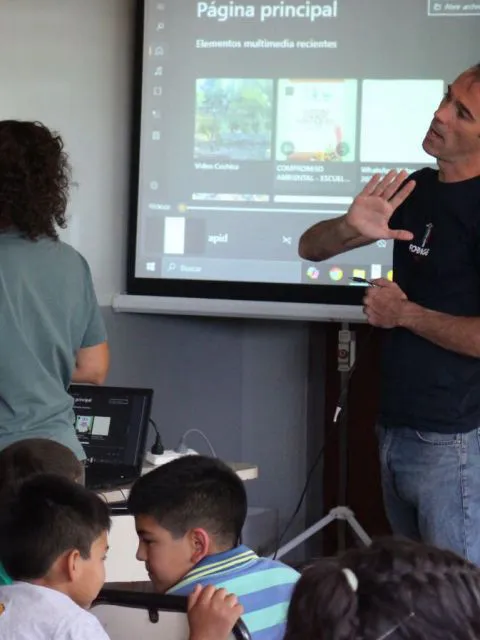 La actividad incluyó la proyección de videos realizados por los propios estudiantes, donde mostraron el desarrollo de sus huertas y puntos de compostaje.