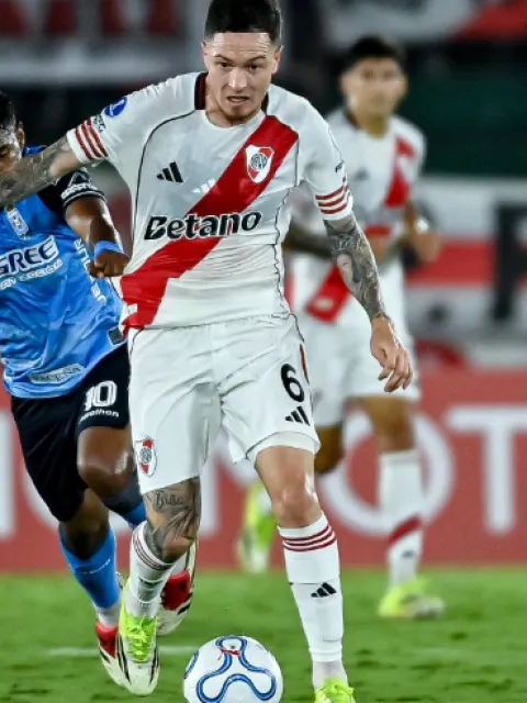 River quedó mal parado en defensa ante una pelota larga para Bayron Garcés y el capitán de Núñez se lo llevó puesto cuando el delantero se iba mano a mano ante Santiago Beltrán.