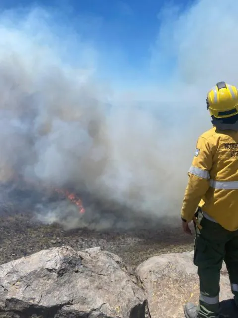 El incendio en el campo fue contenido tras un intenso operativo que involucró cuadrillas del Plan Provincial de Manejo del Fuego Monte Comán y General Alvear, apoyo aéreo del Servicio Nacional de Manejo del Fuego y trabajos directos en ambos flancos para frenar el avance del foco