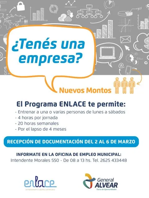 La secretaría de Desarrollo recordó que se encuentra abierta la convocatoria para participar del programa Enlace, una iniciativa que brinda entrenamiento laboral certificado dentro de empresas del departamento.