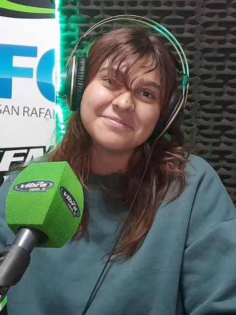Coral visitó acompañada de su mamá Betina Vega el estudio de Vibra FM (100.3) y contó que "el lanzamiento de martillo en la provincia es muy raro y yo soy la única que lo practica en San Rafael".