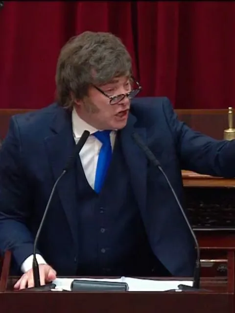 El presidente Javier Milei apuntó contra el kirchnerismo en la apertura de sesiones ordinarias del Congreso y recordó la prisión de Cristina Kirchner. "Ignorantes, la justicia social es un robo, implica un trato desigual ante la ley. Manga de ladrones, delincuentes, por eso tienen a la suya presa", dijo.