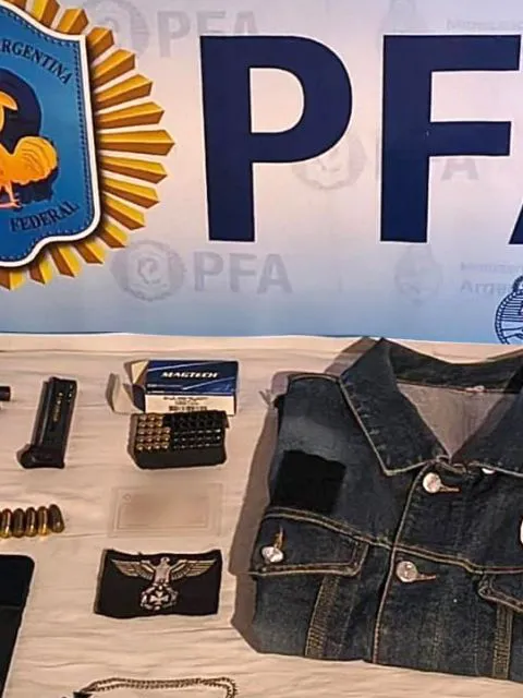 Además, se secuestraron dos armas de fuego (calibres 22 mm y 9 mm), 31 municiones de pistola, 37 cartuchos de escopeta, un cargador, dos teléfonos celulares, elementos con simbología de extrema derecha (entre ellos un paño con el águila imperial, un collar y un chaleco con la Cruz Celta) y diversa documentación de interés para la causa.