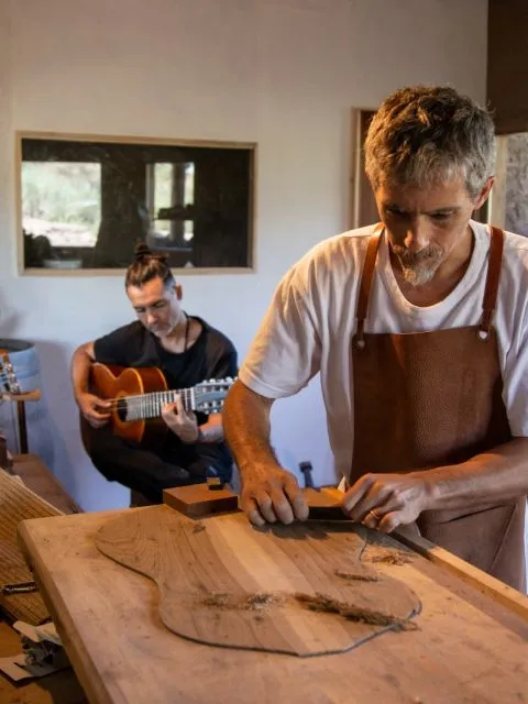 He construido instrumentos para mendocinos, y también para guitarristas de otras provincias, e incluso algunos para extranjeros. Entre otros, Seba Guevara, Luca Pinto, Federico Díaz y Juan Quintero. Con cada uno de ellos fui aprendiendo más, y me fueron subiendo la vara de a poco.