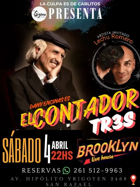 El Contador 3", el unipersonal del actor mendocino Daniel Encinas llega a San Rafael con una propuesta de mucho humor ,teatro popular este sábado 4, a partir de las 22:00 a Brooklyn -Hipólito Yrigoyen 2468-.