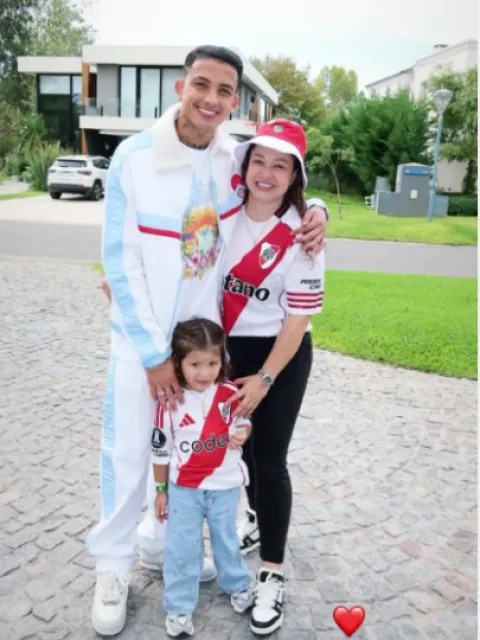 Poco después del pitazo final el mediocampista realizó un posteo junto a su familia, con su esposa Alejandra y su hija, ambas con camisetas y gorros del Millonario en la antesala a lo que sería caída a manos del Xeneize.