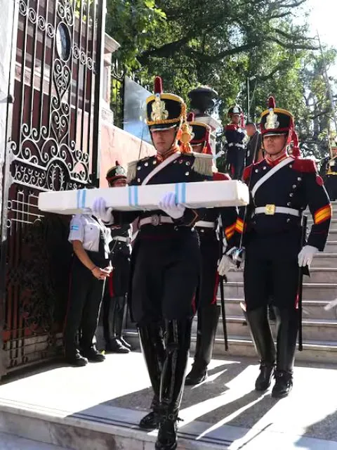 En su cuenta de X, el Ministerio de Defensa, a cargo del teniente general Carlos Alberto Presti, informó que había comenzado "el regreso a casa" del sable corvo al Regimiento de Granaderos. "La unidad creada por el propio Libertador y Padre de la Patria asumirá su custodia militar permanente", se indica. El decreto 81/2026 que oficializó el traspaso lleva las firmas del Presidente, desigando "granadero honorífico" en 2025, y de Presti.