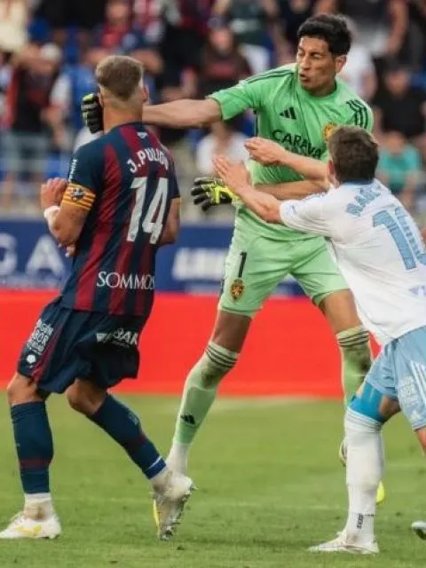 El guardameta de 35 años fue expulsado por doble amarilla a segundos del final del partido, por un empujón contra el defensor Jorge Pulido, y luego de la expulsión corrió hasta la posición del jugador del Huesca y le conectó un puñetazo.
