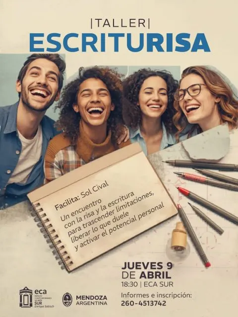 Este jueves 9 a las 18:30 llega un novedoso taller al ECA Sur Enrique Sobich dirigido por la actriz y escritora Sol Cival denominado EscrituRisa, una propuesta abierta al público que utiliza la risa y la escritura para lograr equilibrio bio-emocional y mental.