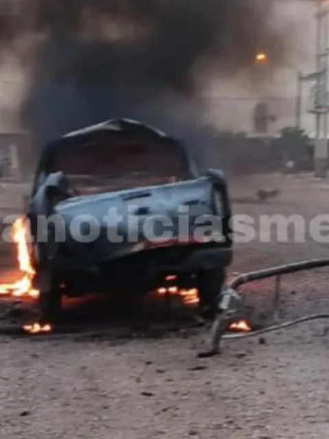 La camioneta se quemó totalmente (foto Mega Noticias).