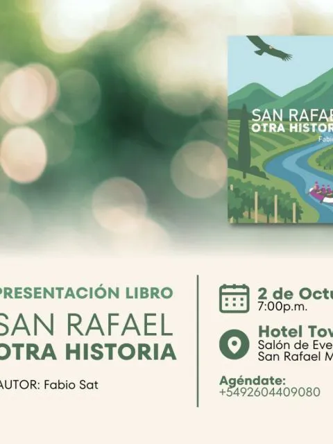 Este jueves 2 de octubre a las 19:30 se realizará la presentación del primer libro del prestador turístico Fabio Sat, "San Rafael, otra historia" en el salón de eventos del hotel Tower, con entrada libre y gratuita.