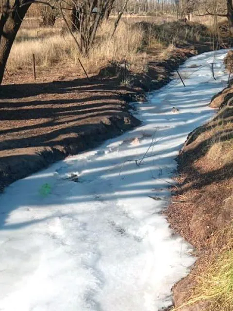 La foto que acompaña esta nota corresponde a un cauce en el departamento de Malargüe cuya agua se congeló debido a las bajísimas temperaturas.