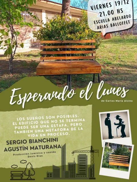 Este viernes 19 a las 21:00 se presentará en el local de la escuela Abelardo Arias Balloffet la obra teatral "Esperando el lunes" a total beneficio de la niña Sol Burgos quien se encuentra internada en el hospital Notti luego de sufrir un accidente.