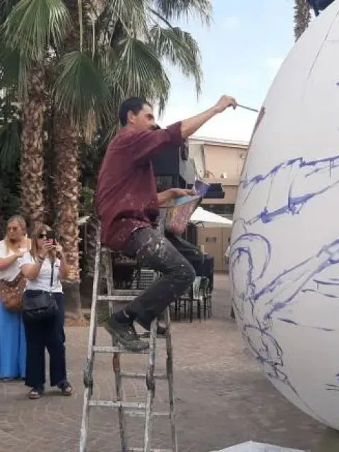 La experiencia de pintar sobre un soporte tridimensional también redefine el vínculo con el espectador. Así lo explicó el artista Andrés Casciani, quien trabaja junto a Ángeles Díaz: "En el caso del huevo se hace indispensable el espectador, porque la obra no puede percibirse en conjunto si no la rodea. Rompemos el límite entre la pintura y la escultura".