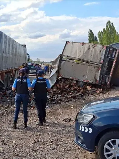 Tras el vuelco de un camión en la ruta 40 que transportaba aceite hubo un intento de saqueo y un ataque a pedradas contra los móviles policiales que estaban de custodia.