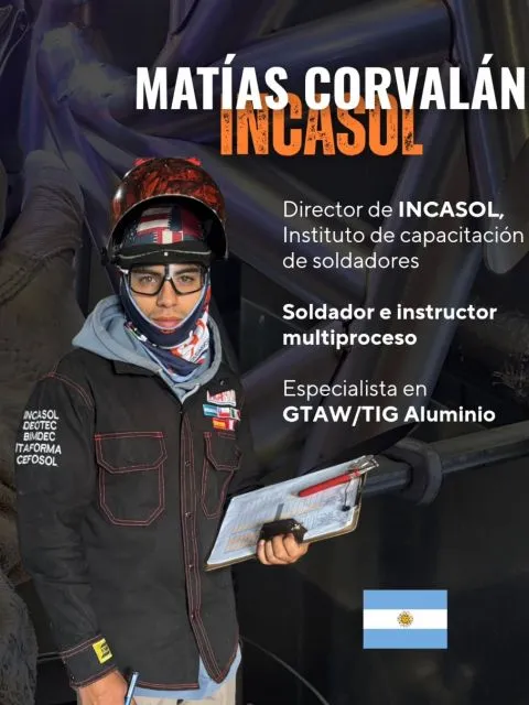 Matías forma parte de INCASOL, espacio donde se desarrollan capacitaciones y formación técnica en soldadura, contribuyendo al crecimiento de nuevos profesionales en el rubro. Su labor incluye el dictado de clases y el acompañamiento en procesos de aprendizaje, consolidando su perfil tanto técnico como formador.