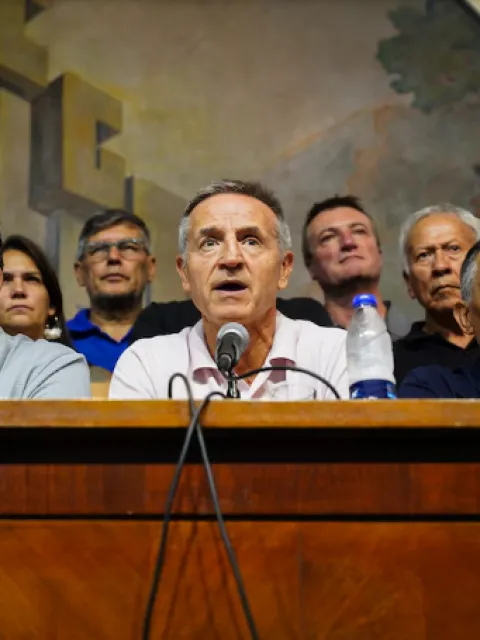 En el encuentro sólo hablaron los cotitulares de la CGT Octavio Argüello (Camioneros), Jorge Sola (seguros) y Cristian Jerónimo (empleados del vidrio), quienes agradecieron a los trabajadores que adhirieron a la huelga y fueron particularmente críticos no sólo del gobierno de Javier Milei sino también de los gobernadores y los legisladores que apoyaron la reforma laboral.
