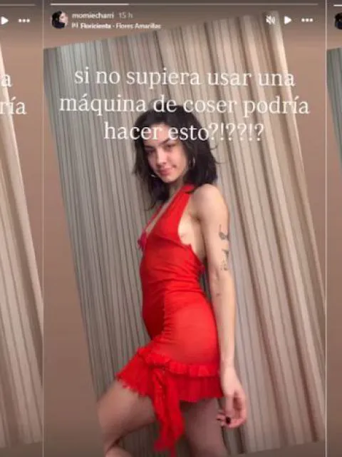 En sus historias, la joven mostró una serie de fotos luciendo vestidos confeccionados íntegramente por ella. En la primera imagen, llevó un minivestido de animal print con breteles anchos y volado en el ruedo, ceñido al cuerpo y con reminiscencias de la moda de los 2000. Sobre el video desafió: "¿Si no supiera usar una máquina de coser podría hacer esto?".