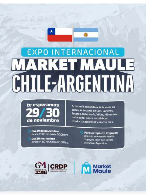 Este fin de semana en el parque Hipólito Yrigoyen se realizará la "Expo Internacional Market Maule Chile - Argentina" en la que emprendedores de la Región del Maule expondrán sus productos y se promocionará el turismo de esa zona del país vecino.