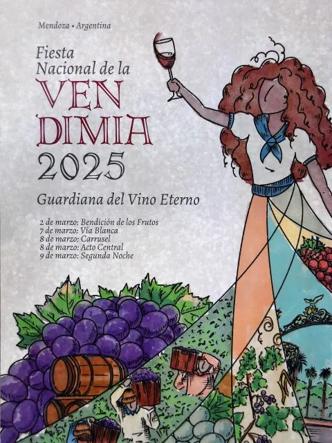 Se conoció cuál será el afiche que representará a "Guardiana del vino eterno". Josefina Laudadio resultó ganadora del certamen para el sistema de identidad y comunicación visual de la Fiesta Nacional de la Vendimia 2025, la fiesta más importante de Mendoza en el país y en el mundo.