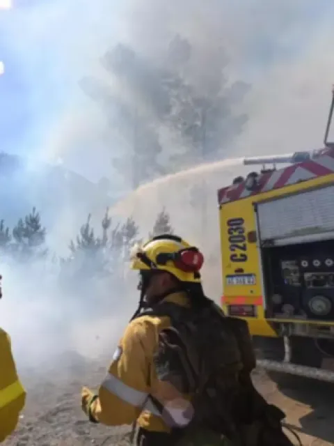 Mientras tanto los medios aéreos operan de forma esporádica, según las condiciones climáticas y la visibilidad, que por momentos es nula por efecto del humo.