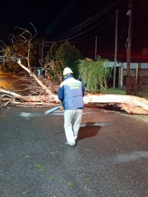 Desde el Municipio informaron que las brigadas junto a personal de Edemsa trabajaron en el retiro de cables y ramas y en el reestablecimiento de la energía eléctrica.