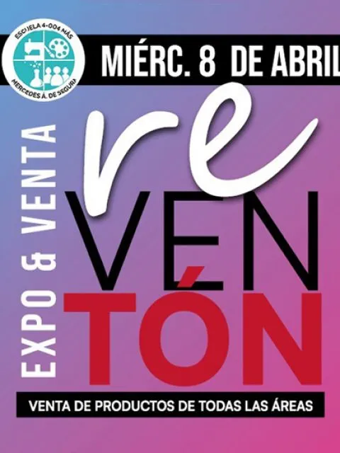 Este miércoles 9 de abril de 9 a 12 y de 14:30 a 17:00 se realizará en la Escuela 4-004 Mercedes Álvarez de Segura la exposición y venta de productos denominada "Reventón" con combos muy económicos para todo público.
