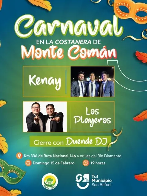 El fin de semana de carnaval se vivirá a pura fiesta a la vera del río. El domingo 15 de febrero la Costanera de Monte Comán se llenará de música, diversión y alegría.