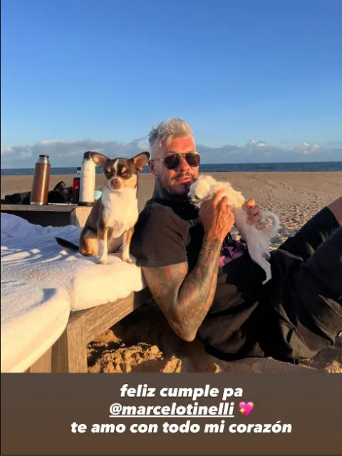 Candelaria también expresó su afecto públicamente: "Feliz cumple al mejor papá del mundo. Te amo infinito. Por siempre juntos". En otra publicación, sumó: "Te amo @marcelotinelli". Compartió recuerdos de infancia y un video de su padre bailando junto a Lolo.