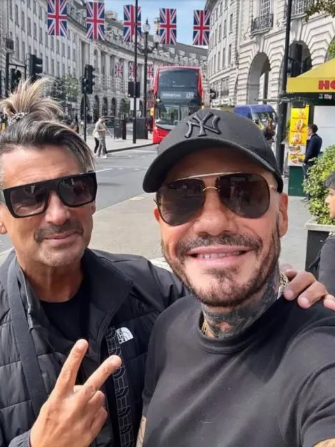 Una mañana soleada de abril en Piccadilly Circus, y dos siluetas que podrían pasar inadvertidas entre el gentío londinense si no fuera por un detalle: su aura inconfundible. Marcelo Tinelli, con su gorra negra, gafas de aviador y tatuajes asomando en cada gesto, posa junto a su primo y compañero de aventuras, Luciano El Tirri Giugno, que luce una colita de pelo como una marca rebelde. Entre ellos, un signo de paz dibujado en el aire, un autobús rojo, característico de la ciudad, cruza la escena, y el eco de un saludo cálido: "Buen día, Londres".