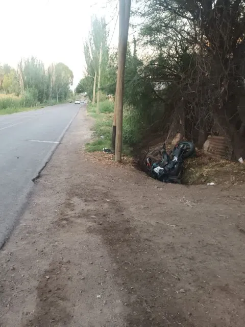 Al llegar al cruce con la calle Milagros perdió el dominio de la moto colisionó contra el guardarraíl y luego cayó a un canal de riego.