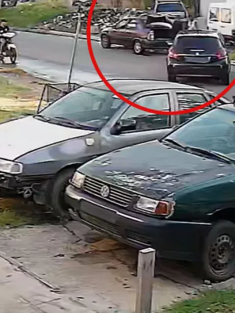 Fue entonces que un Peugeot 208, manejado por un joven de 18 años, apareció por la calle a una alta velocidad, derrapó y chocó contra los dos hombres. El fuerte chirrido de los frenos se escuchó fuerte en la cuadra. Las víctimas cayeron inmediatamente al piso y el auto de Huaranca fue desplazado a la mitad de la calle por el impacto. La tapa del baúl quedó abollada.