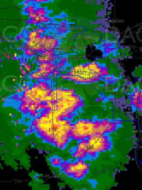 Según un reporte del Ingeniero Raúl Besa, hay posibilidades de precipitación de lluvia y granizo en las zonas de: El Escorial, La Correína y en Malvinas Norte. Lluvia para Las Paredes, El Cerrito y ciudad de San Rafael.