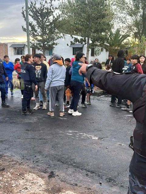 En calle Vélez Sarsfield a la salida del barrio El Molino, antes del badén del río Diamante, un grupo de vecinos protestan porque un sector se encuentra sin luz.