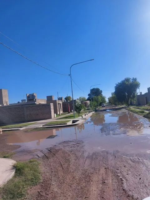Vecinos del barrio Juan Vicente, detrás del cementerio, sufren una pérdida de agua en calle Alem y Galileo Galilei, que ha causado un barrizal.
