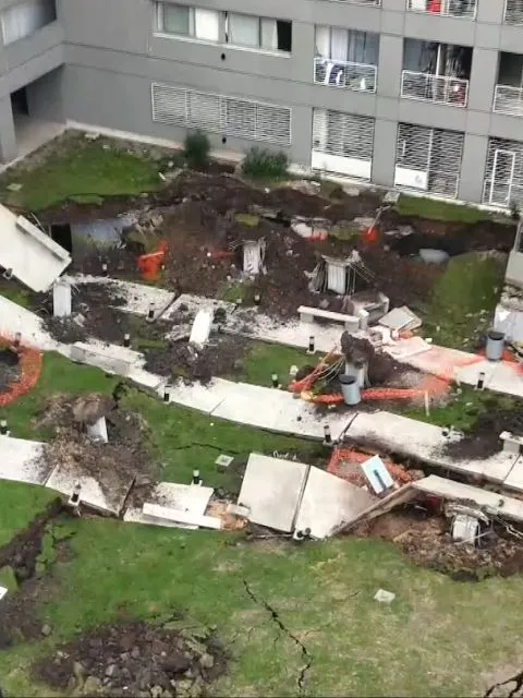 El colapso ocurrió en un perímetro que es rodeado por el complejo de viviendas y funciona como patio interno. Por razones que aún son materia de investigación, el terreno se derrumbó sobre el estacionamiento que está debajo. Tras el impacto, 65 vehículos que se guardaban en el garaje quedaron aplastados.
