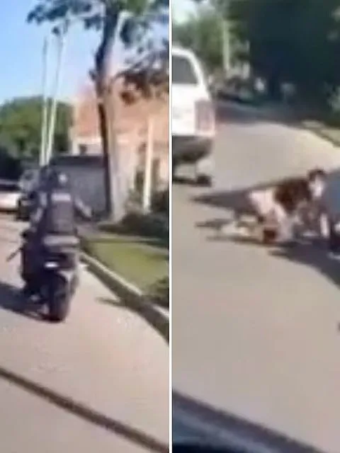 En el video se observa a dos delincuentes huyendo al galope, cuando un patrullero se puso a la par de ellos y un agente sacó medio cuerpo por la ventana y forcejeó con uno de ellos hasta hacerlos caer al suelo. En el asfalto quedaron los ladrones y la yegua.