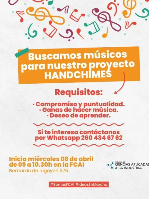 Está abierta la posibilidad de participar en el proyecto "Handchimes" -tubos sonoros- que lleva adelante la Facultad de Ciencias Aplicadas a la Industria en San Rafael.