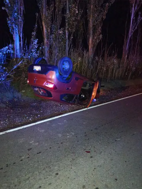La conductora de un Renault Kwid circulaba por esa ruta hacia el este cuando por causas desconocidas perdió el control de su vehículo y volcó quedando con sus 4 ruedas hacia arriba sobre el cardinal Norte.