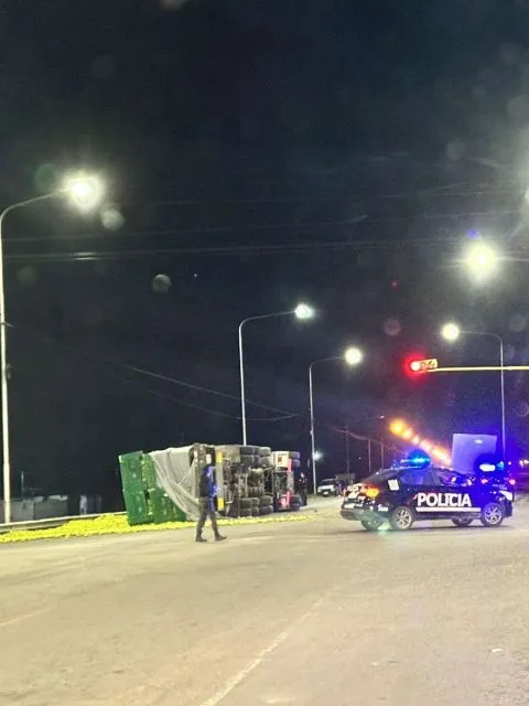 Un camión conducido por un chofer sanrafaelino de 48 años volcó este miércoles por la noche en la ruta 188 y calle 7.