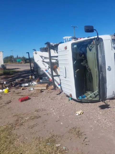 Un camión grúa volcó este jueves alrededor de las 14.45 en la ruta nacional 143 y calle 9, cerca de Atuel Norte, en zona de Cañada Seca.
