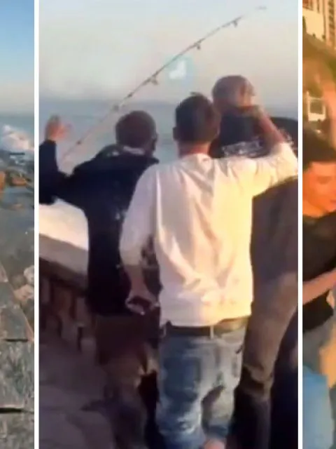 Un grupo de jóvenes a la salida del boliche se encontraron con un hombre que estaba pescando y los chicos se pusieron a alentantarlo.