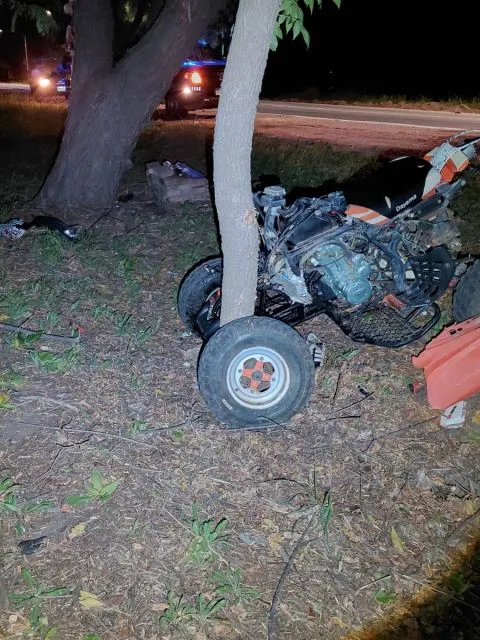 El siniestro sucedió este miércoles pasadas las 23 cuando el menor de edad viajaba solo en el cuatriciclo por esa ruta hacia el este y a 100 metros del cruce con Sardini. por causas desconocidas, no pudo controlar el rodado y colisionó contra un árbol.