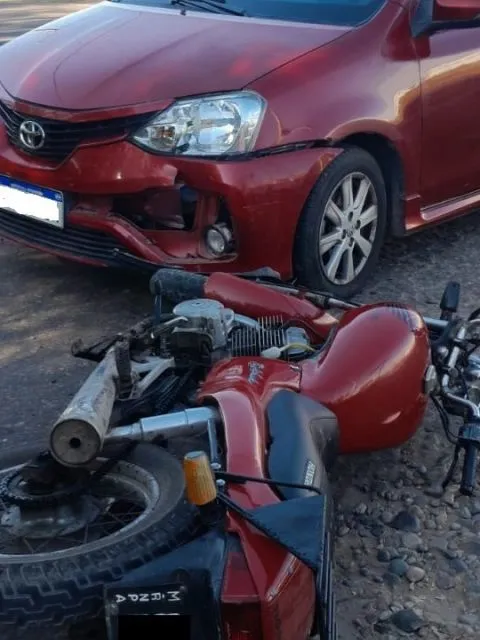 Como consecuencia del impacto, el conductor de la moto resultó con un traumatismo de brazo y pierna derechos y fue trasladado al hospital Schestakow.